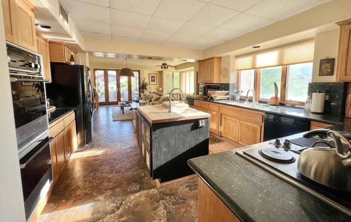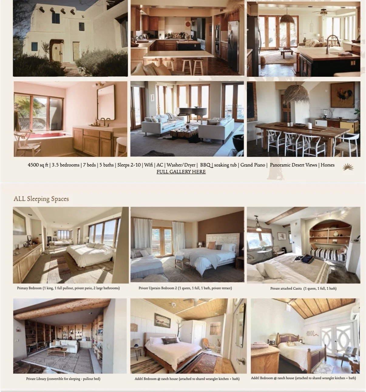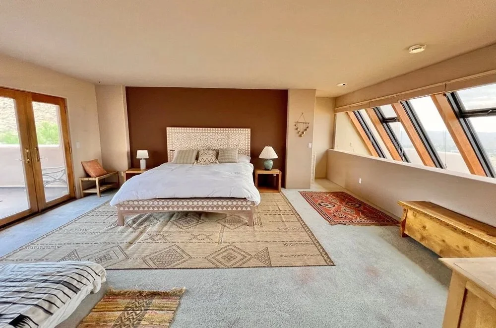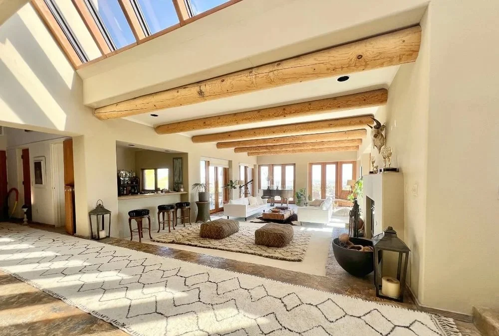 The main ranch house is filled with natural light and warm, grounded desert textures.